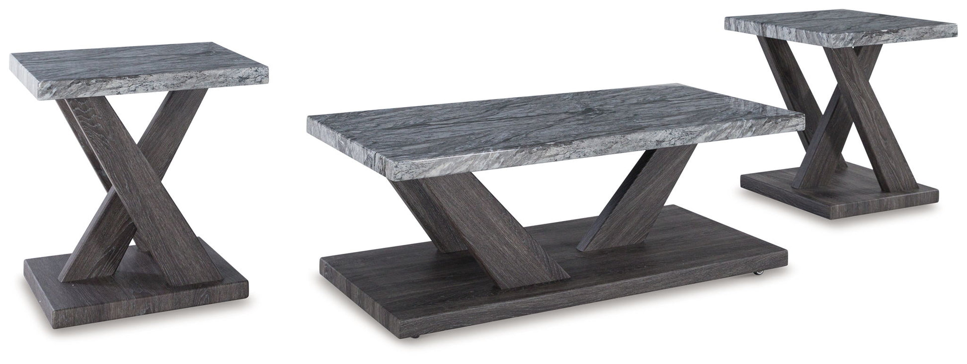 Live in luxurious harmony (without breaking the bank) when you stage this table set in your seating area. Dynamic weathered gray bases act as the foundation for faux gray marble tops. Très chic. Your contemporary living room has never been so stylishly coordinated. And for must-have function, the coffee table's built-in casters have you covered.