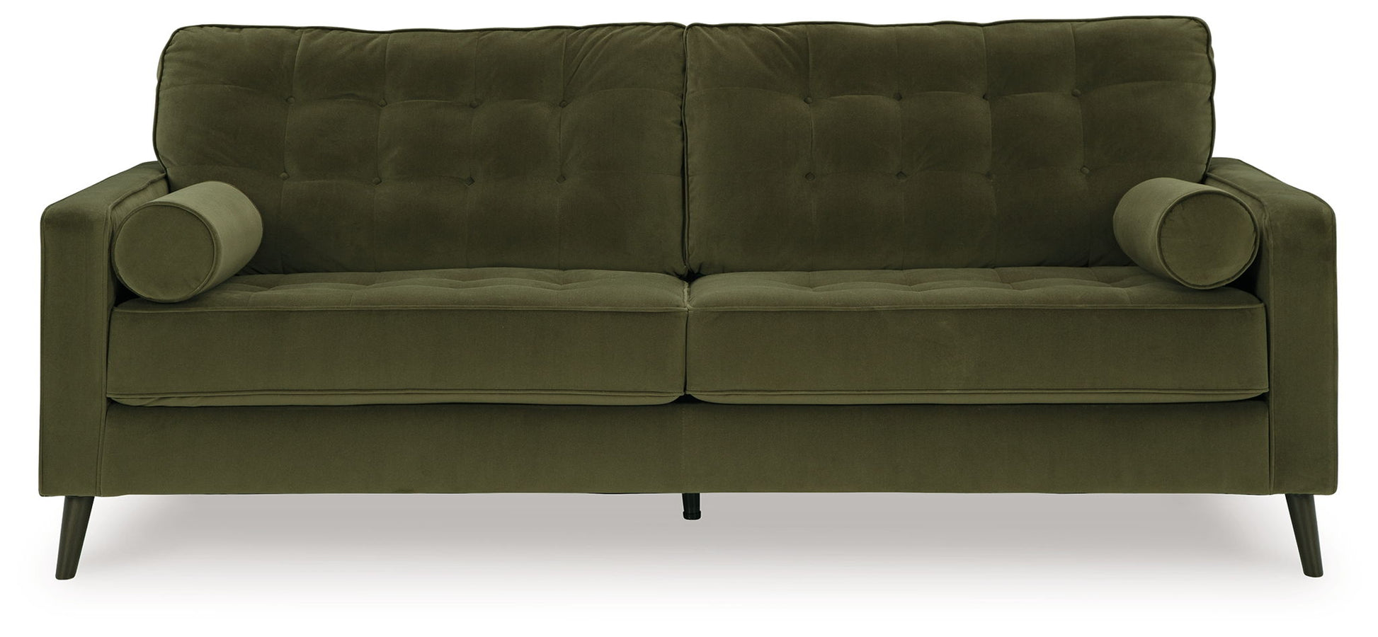 This sofa strikes the perfect balance between elevated and eclectic. Contemporary lines and a richly hued velvet upholstery keep things chic. Design details like button tufting and splay legs add mod flair. It’s sure to keep your living room luxuriously on trend—at a price that won’t break the bank.